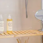 Et værelse har kaffe- og tefaciliteter, tv, mens køkkenet også indeholder kaffemaskiner/tekedler, et køleskab og køkkenudstyr.